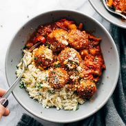 Not to be dramatic but in my experience there’s something magical about the combination of panko and Parmesan loaded quick chicken meatballs (remember these Baked Chicken Meatballs?), tangy tomato sauce with garlic and sautéed peppers, and a silky-creamy-delicious pile of hot orzo on the side. This is the kind of recipe that just calls you straight home to the dinner table, you know? And there’s even more where this meatball/orzo combo came from.